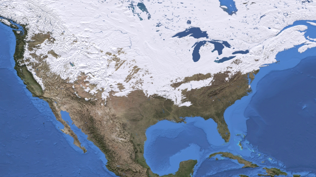 NASA satellite image of snow cover, which helps moderate temperatures by reflecting sunlight back into space. Satellite measurements from the 1960s to the present show a 10 percent decline in annual snow cover.