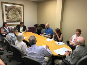 One of our periodic meetings with Mayor Tom Koch–on 14 September 2017. We praised the mayor for the city’s work on energy efficiency and renewables and suggested further projects, including curbside collection/composting of food waste, electric vehicles for the city fleet, and more attention to energy performance in construction of new buildings.
