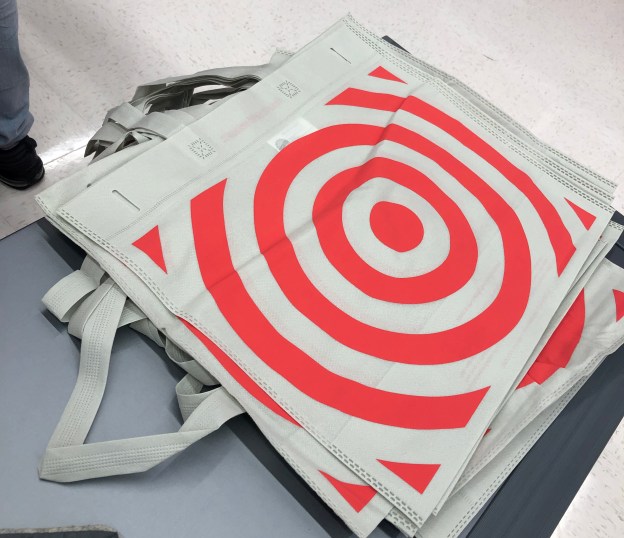 IMAGE: Reusable bags at the new Target in North Quincy. (Photo: Julie Mallozzi)