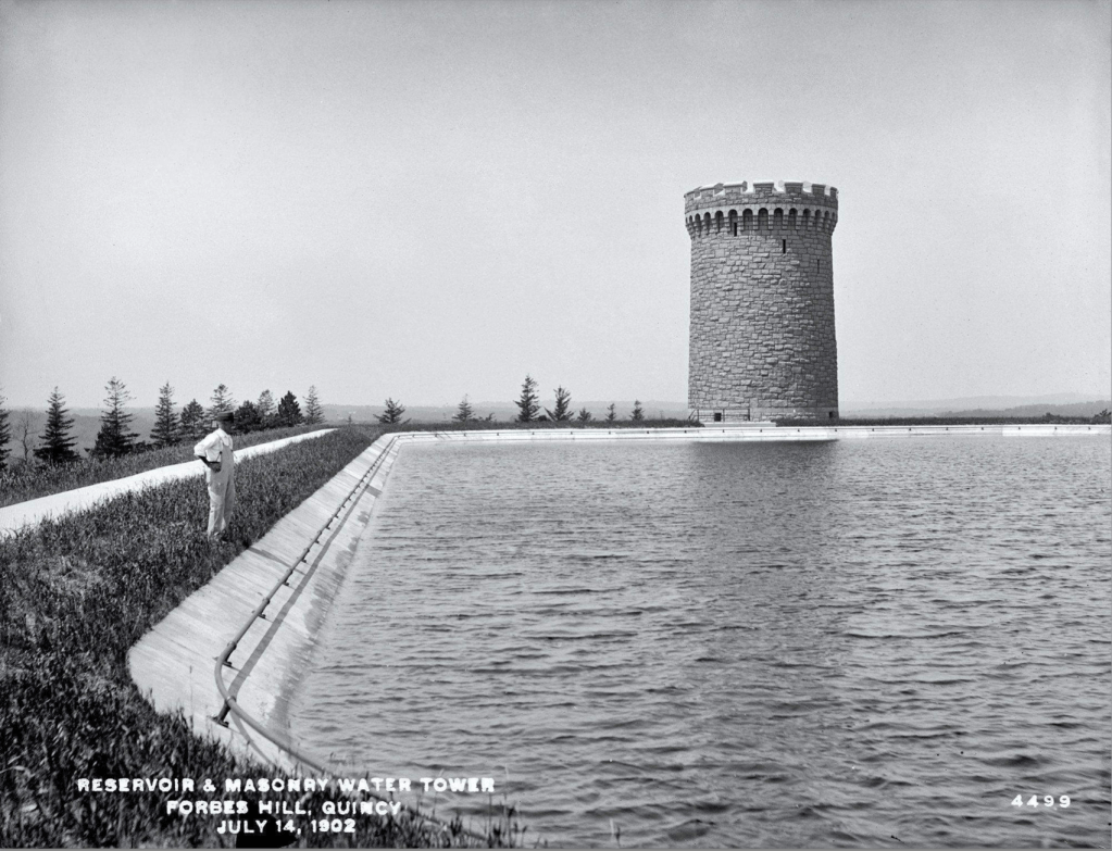 Forbes Hill Reservoir & Water Tower in 1902, courtesy of Metropolitan Water Works Photograph Collection (photo: George P. Goodman)